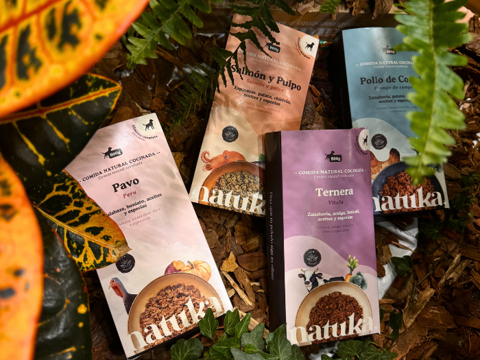 1-La transición directa Si bien con el cambio directo a la dieta natural cruda no suele haber ningún problema y es lo más simple y rápido, habrá que tener siempre en cuenta la salud y la edad del perro, los años que lleva comiendo alimentos procesados, y si se le ha alimentado con alimentos frescos con anterioridad. Para hacer la transición directamente deberemos optar por alimentos y proteínas de fácil digestión, y como siempre vigilar las cacas que serán nuestra guía en el proceso. Con Natuka siempre recomendamos empezar con los tacos de pollo o pavo para habituar al animal al hueso carnoso, y a partir de aquí empezar a introducir más ingredientes hasta completar los porcentajes de la dieta BARF. Autores como Ian Billinghurst dicen que puede ser de ayuda antes de la transición un día de ayuno, sobre todo con perros que se extrañan ante el nuevo alimento. De esta manera el perro detoxifica en cierta medida el organismo, y además tendrá hambre cuando le ofrezcamos su nueva comida. Como regla general al hacer el cambio radical a la dieta BARF, lo mejor es dividir la cantidad diaria de alimento en pequeñas tomas para enfrentar a nuestro perro a menos cantidad de alimento de cada vez. Esto es sobre todo importante en perros de razas grandes donde una toma sería mayor en peso. Si bien un perro adulto comería dos tomas diarias, al hacer este tipo de transición lo recomendable sería hacer 3 o 4 tomas diarias más pequeñas. * La transición directa puede no ser la forma más recomendable de pasar a BARF para perros mayores, perros con problemas digestivos o bien con el sistema inmune débil. Los perros que llevan muchos años comiendo piensos procesados, tienen el sistema digestivo muy debilitado y podrían no tolerar este cambio directo, provocándoles vómitos y diarrea. 2 – La transition progresiva. Es la forma más recomendable en perros mayores o con con problemas digestivos. Introduciríamos las primeras veces el alimento crudo en pequeñas cantidades o como premio, y buscando como siempre alimentos y proteínas de fácil digestión (te recomendamos los tacos de pavo de Natuka) Lo más adecuado es ofrecerle el alimento nuevo separado de las tomas de su comida principal, ósea si le das dos tomas (mañana y noche) al medio día podría ser un buen momento. Como siempre vigilamos las heces que serán nuestra guía en la transición. Si estas son normales podemos ir incrementando la cantidad durante varios días o incluso semanas, y si las cacas continúan solidas ya podríamos sustituir una toma de pienso por el nuevo alimento y hacer una dieta mixta durante un tiempo. Si ves que no se desestabiliza, ya podemos hacer la transición completa a la dieta BARF sin ningún problema. * Recuerda que no se deben mezclar nunca en la misma toma los alimentos frescos de la dieta BARF con el pienso, las digestiones son muy distintas en tiempo y podría provocar gases y problemas intestinales.